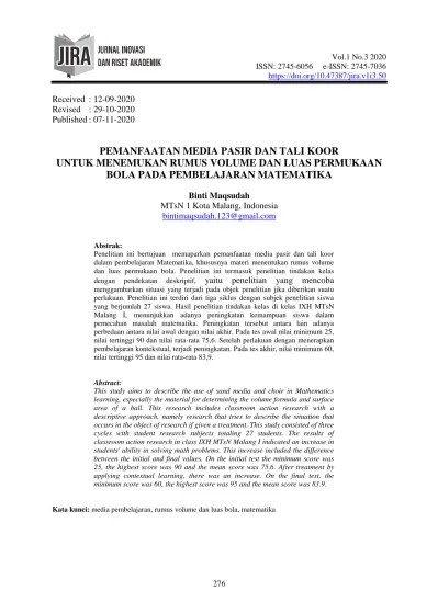 Selain bisa dihitung volumenya, bola juga bisa dihitung luas permukaannya. Pada soal di atas diketahui: Ditanyakan volume dan luas permukaan? Rumus untuk menghitung luas permukaan bola adalah l= 4πr2. V = 4/3 x π x r3.